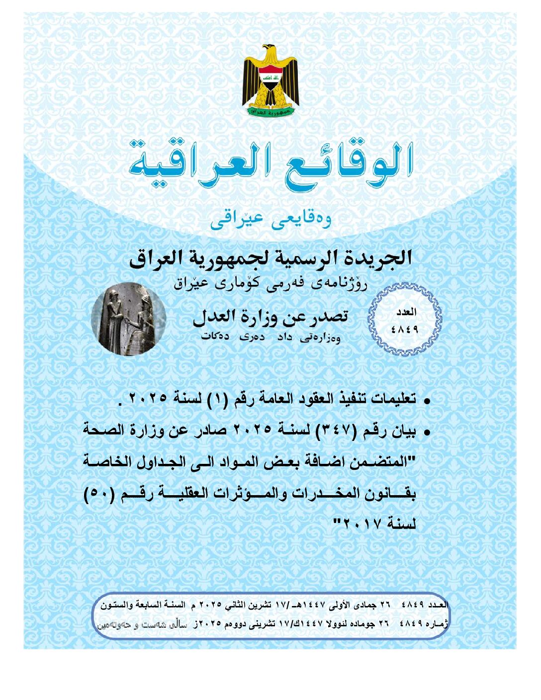 تعليمات تنفيذ العقود العامة لسنة 2025